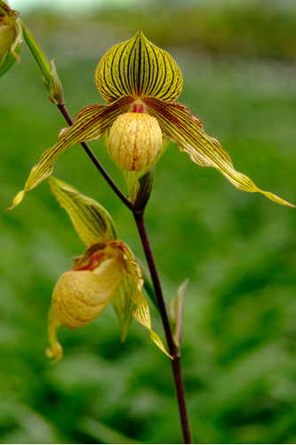 ※パフィオは別名が恐ろしく長く、パフィオペディラム・スリッパオーキッド・レディーススリッパと言います(笑)、家庭で育てるにも適していて水を大変好むランらしいです。
